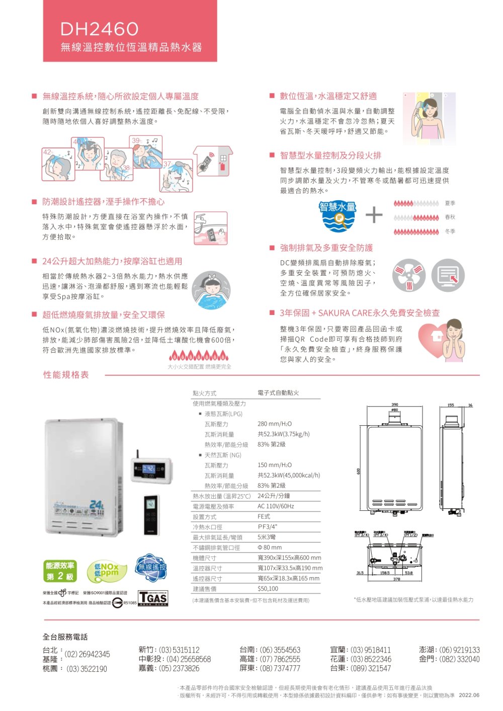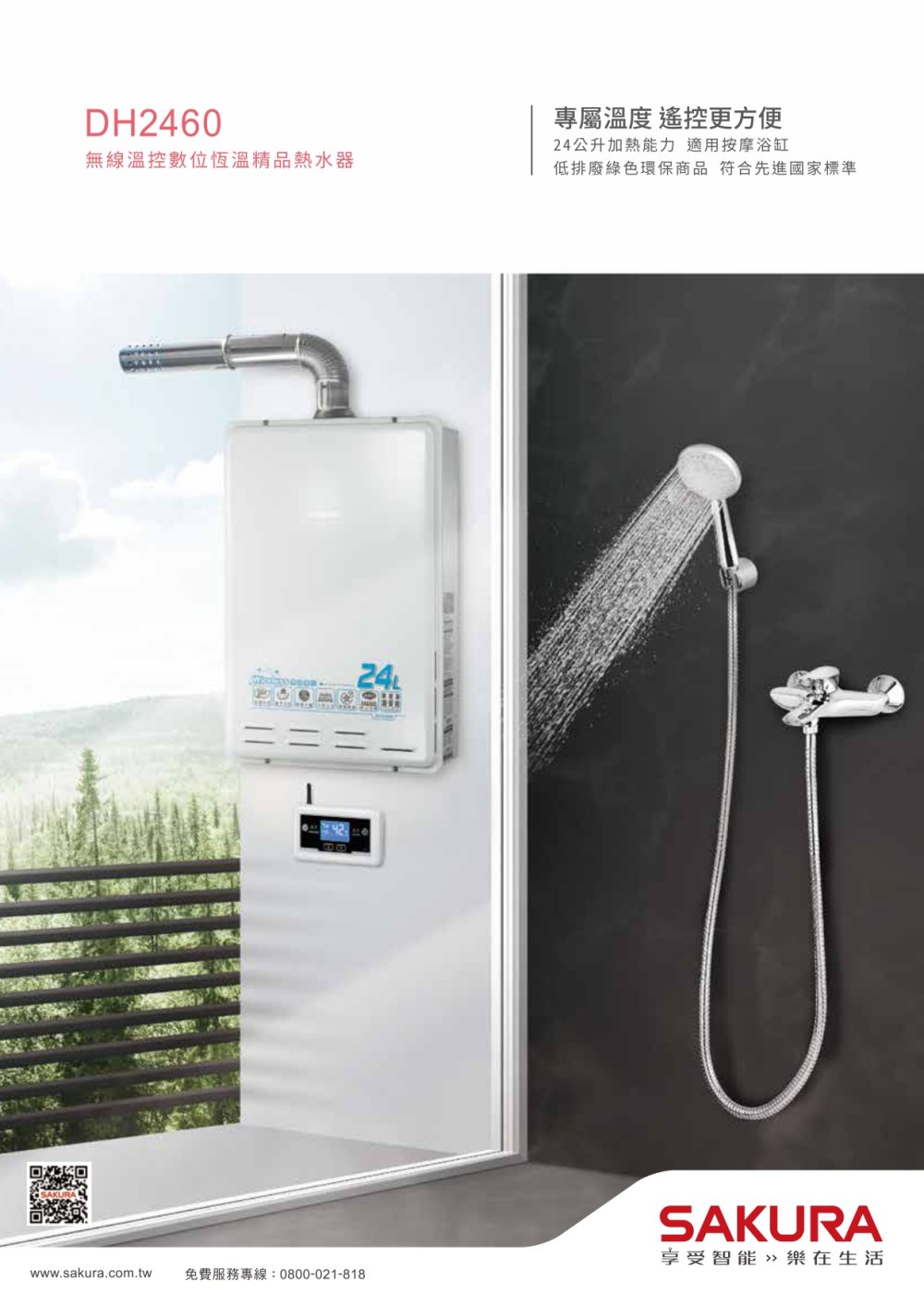 SAKURA 櫻花 DH2460|無線遙控、水量調節|24公升 智能控溫熱水器