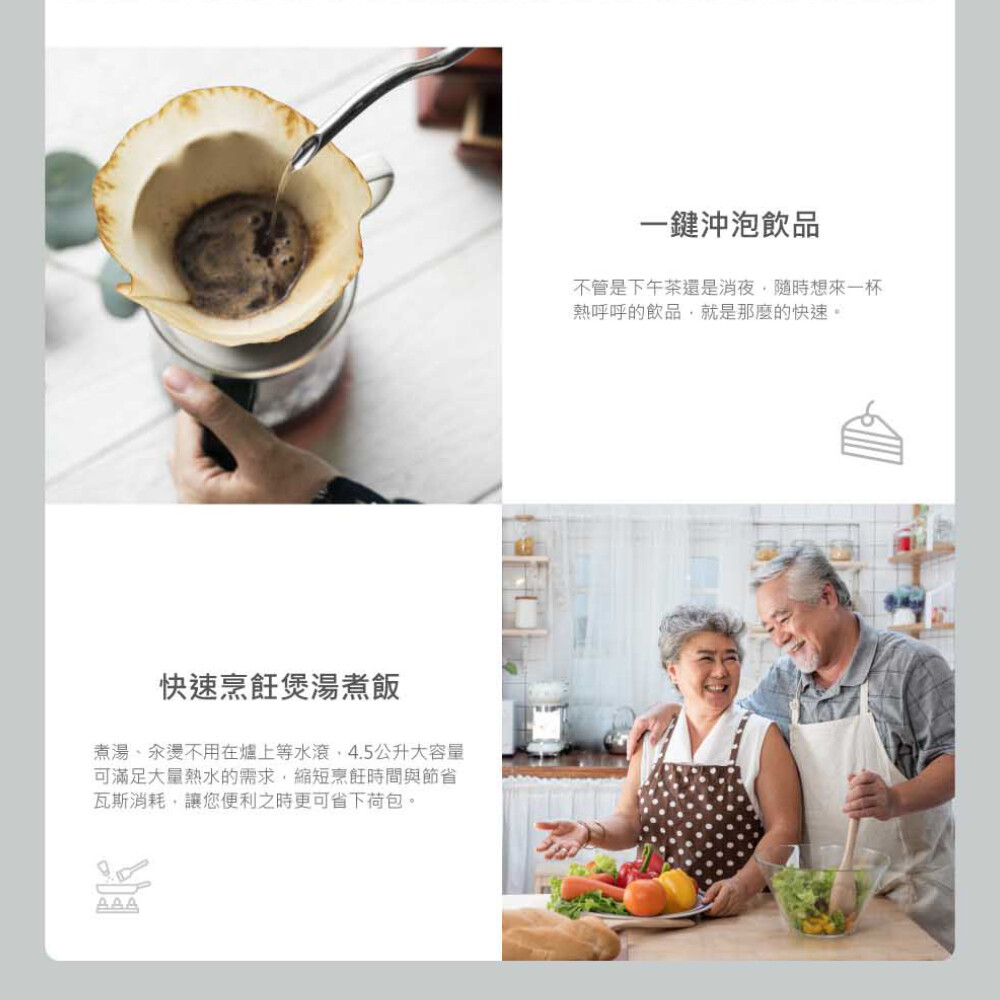◆ 超大4.5L熱桶搭配超強1000W加熱器,啟動至加熱完成僅需約20分鐘