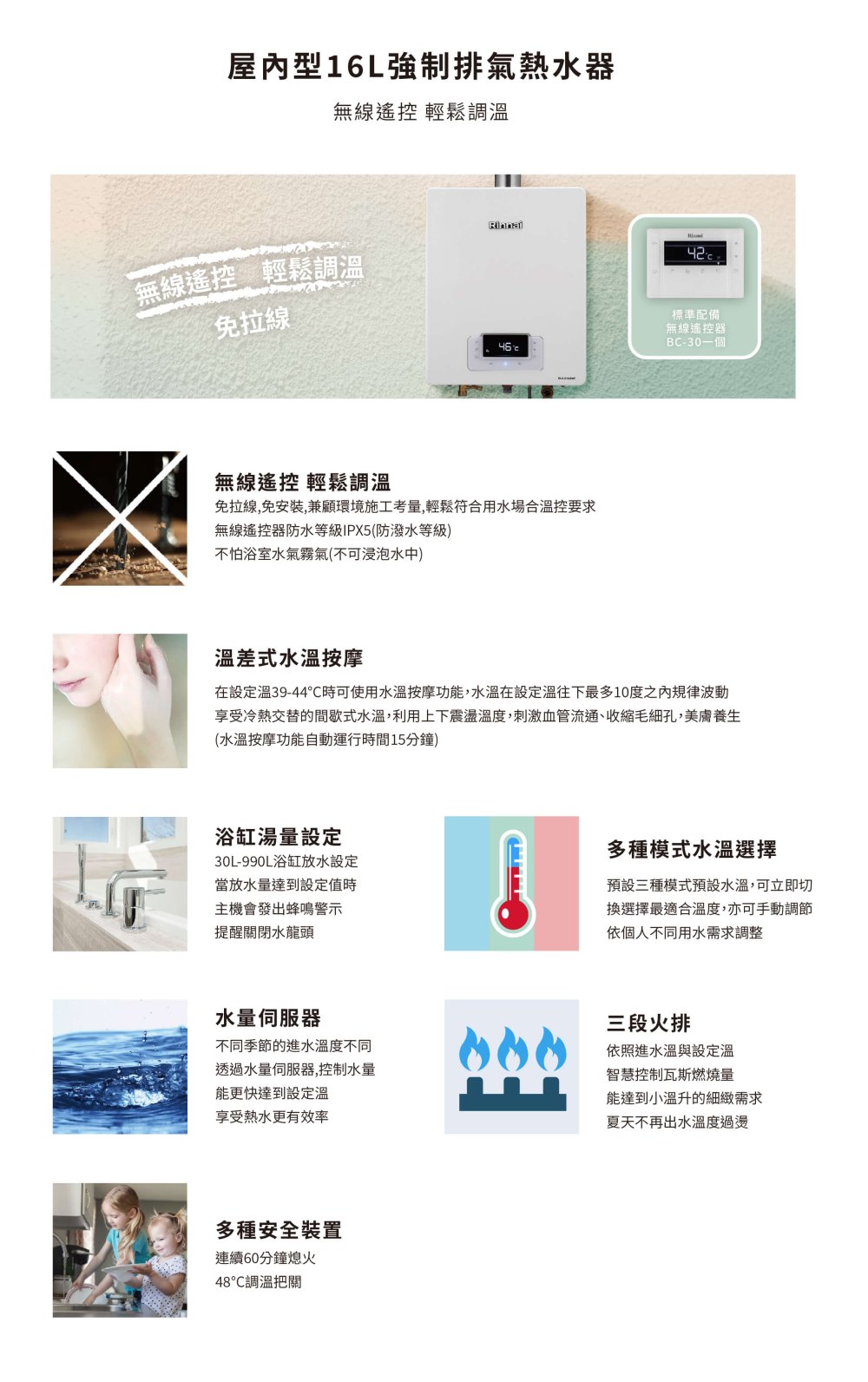 Rinnai 林內 RUA-C1630WF|水量伺服器、台灣製造|16公升 智能控溫熱水器