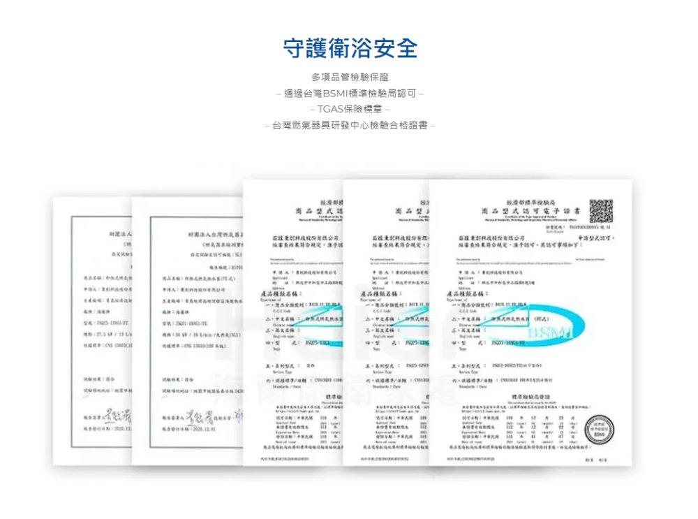◆ 8項安全裝置:防空燒/防爆燃/停電斷氣保護/點火失敗/防假火/水壓保護/防漏電/防雷擊