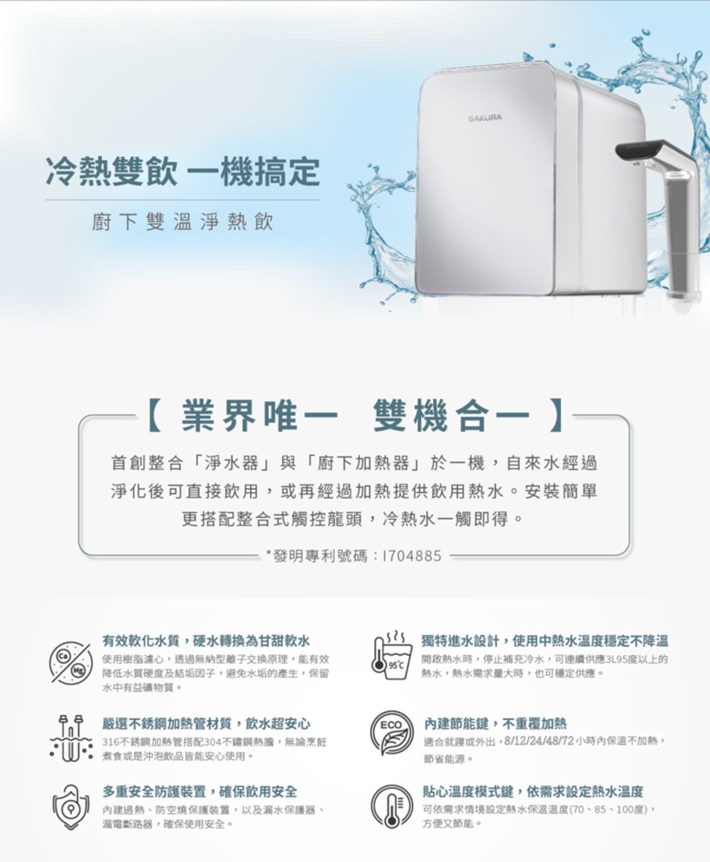 ◆ 業界唯一,淨水+熱水兩機合一