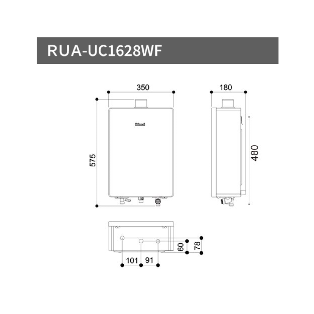 Rinnai 林內 RUA-UC1628WF|水量伺服器|16公升 鏡面款智能控溫熱水器